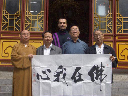 参观考察后,长乐山人先生兴致勃勃的为传真法师题字:佛在我心。