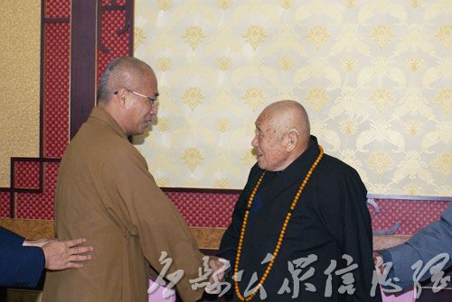 慧礼法师向梦参老和尚恭敬亲切的问候
