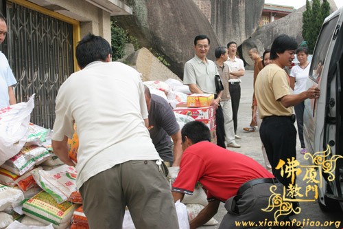 10月12日上午9点,厦门虎溪岩寺举行扶困济贫慈善活动,将大米3000斤、若干箱面等食品布施给思明区开元街道、厦港街道、滨海街道的贫困家庭。思明区民宗局局长黄诚,专程到虎溪岩寺布施活动现场,支持虎溪岩寺所作的慈善事业,替被救济的家庭向虎溪岩寺表示感谢。