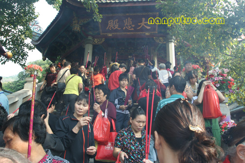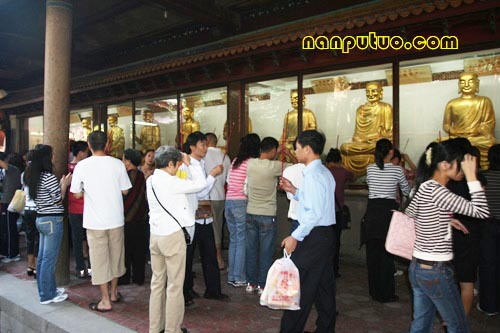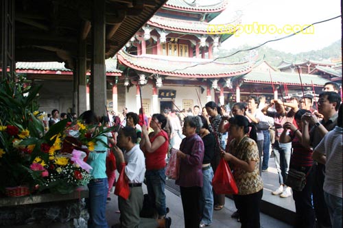 农历九月十九(2007年10月29日),恭逢观音菩萨出家纪念日,南普陀寺内香客云集,人潮涌动,清烟缭绕,梵音阵阵。信众为祈国泰民安,合家幸福,虔诚焚香,诚心礼拜。