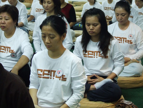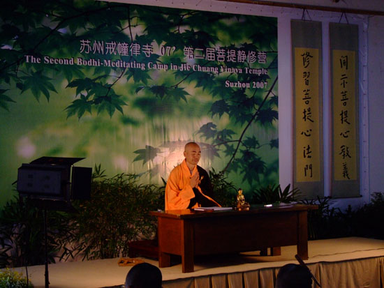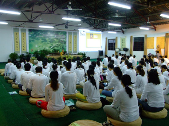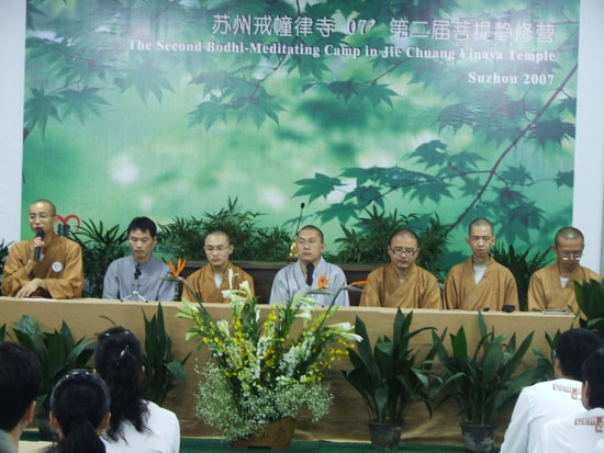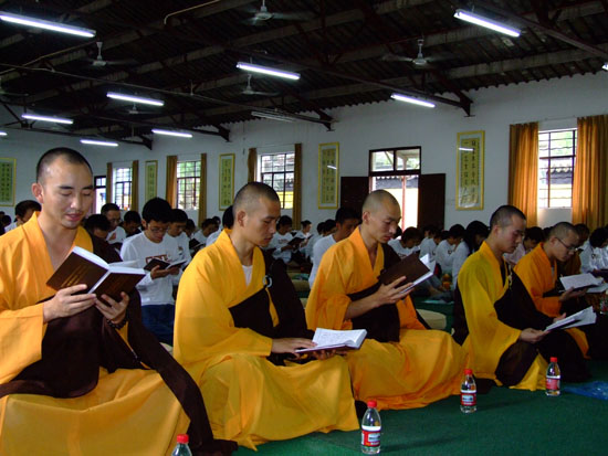下午两点,先由界文法师为大家开示诵经的要领后,几位法师和大家一起念诵《华严经》的“初发心功德品”和“净行品”及“普贤菩萨行愿品”,通过对经文的念诵,大家对菩提心的修学有了更加明确的认识。 晚上七点,由教学部观云法师带领大家禅修,法师建议大家用念佛、心念耳闻的方式来摄心,从而实践止观的修行。