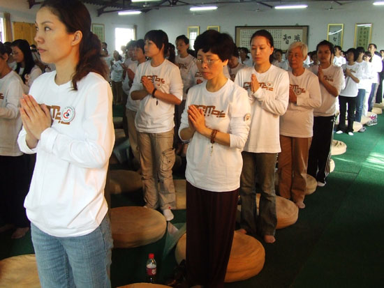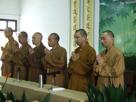 10月2日,早 5:30 成峰法师在念佛堂带领大家做皈依共修,加深大家对三宝的信心。八点,本届静修营在前花园念佛堂举行了开营仪式。西园寺普仁大和尚、济群法师、观云法师、恒强法师、界文法师出席了开营仪式。大和尚用简短的言语介绍了西园寺的宗旨和现状;观云法师对大家提了三点要求,希望大家能以虔诚之心来认识菩提心和修学菩提心。最后来自上海的营员代表史洁做了精彩的发言,并祝愿本届静修营圆满成功! 九点济群法师正式开示菩提心教法。法师对于发菩提心的重要性、功德、种类和修学菩提心仪轨做了详细的开示;并带领大家修习菩提心仪轨。