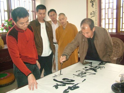 著名书法家陈立平参观华岩寺并挥毫泼墨