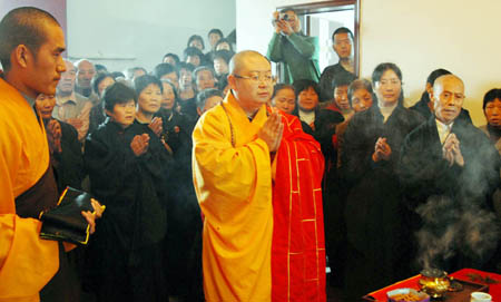 10月14日,湖北省鄂州市东岳寺举行西方三圣佛像开光法会,来自社会各界的贤达、居士、善信数千人参加了开光法会;开光法会在居士组成的秧歌队表演后正式开始,开光仪式由鄂州市佛教协会会长、东方山弘化禅寺方丈正慈法师主法。