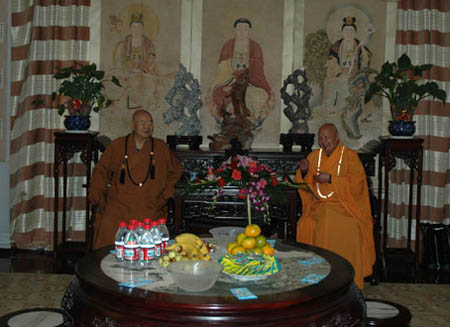 星云法师在性空法师、秋爽法师陪同下到大殿礼佛,一起参观了寒山寺并亲切交流。性空法师与星云法师一起畅谈同窗往事并在临别之时互赠礼物。