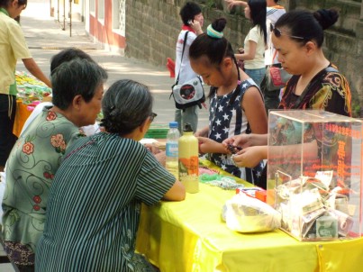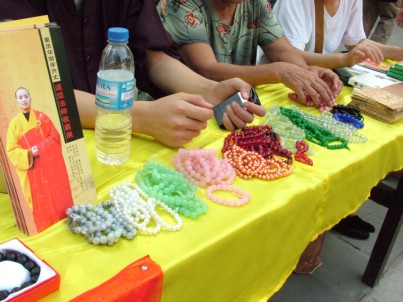 据了解,此次义卖物品计有开光佛珠、道坚法师新近出版的著作《佛教知识学习问答》以及华岩寺水陆法会系列光盘等。义卖现场,众多居士、香客和游客对活动给予了积极的支持,纷纷解囊相助。