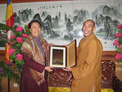 近日,深圳政协副主席姜忠及秘书长姚欣耀一行参访法门寺,智雄法师接待。临别,智超法师向深圳政协一行赠送礼品并合影留念。