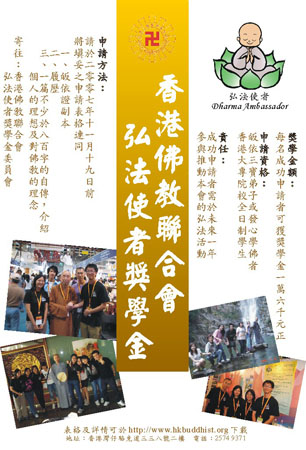 责 任 : 成功申请者需于未来一年参与推动香港佛教联合会的弘法活动。
