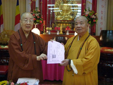台湾省中国佛教会理事长净良长老(左)、副理事长圆宗法师(右)