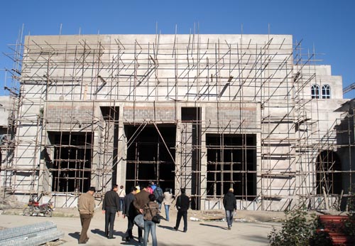 吉木萨尔县北庭西大寺遗址保护棚主体工程完工。 11月月14日,笔者者在施工现场看到,西大寺已被庞大的砖混结构保护棚包围,工人们正在进行最后封顶工作。