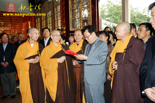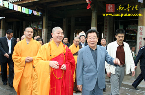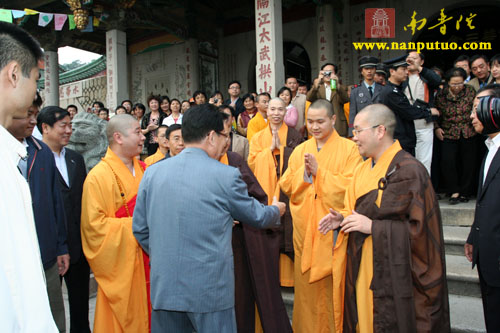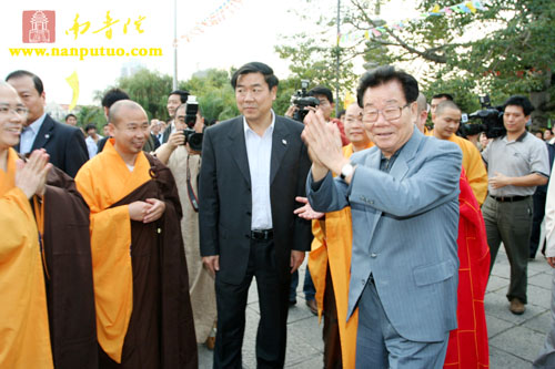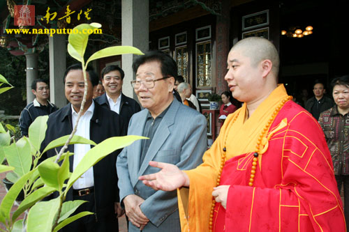 2007年11月23日下午4时许,李瑞环主席及其夫人在福建省委书记卢展工、厦门市委书记何立峰、市长刘赐贵等省市各级领导的陪同下来到南普陀寺。厦门佛教协会会长、南普陀寺方丈则悟大和尚,厦门佛协领导及我寺班首执事等于天王殿前列队迎接。