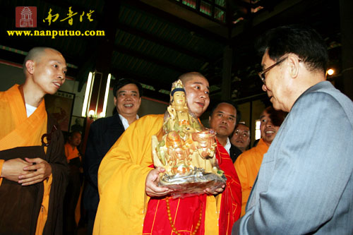 则悟大和尚代表我寺常住馈赠李主席观音菩萨像一尊