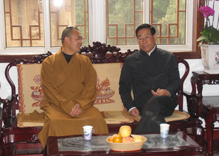国家环保总局副局长潘岳一行视察南京栖霞寺