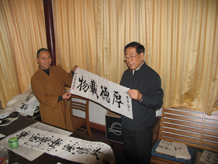 2007年11月14日,国家环保总局潘岳副局长一行到江苏南京栖霞古寺视查,受到南京栖霞古寺隆相法师及僧众的热情接待。隆相法师陪同潘岳副局长一行参观了古寺并就寺院的环保问题进行了交流,最后潘岳副局长为古寺题字“厚德载物”,并合影留念。