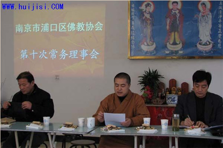 2007年11月2日上午,江苏省南京市浦口区佛教协会在惠济寺梵音讲堂召开第十次常务理事会,区宗教局戴局长、辈科长、曹主任、以及全区十三所寺院的代表共18人出席了会议。