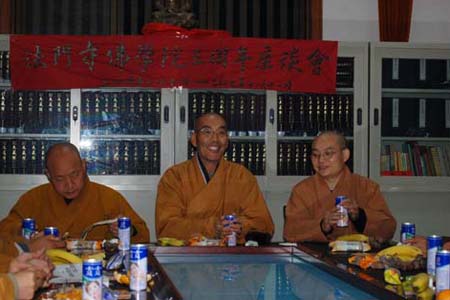 2007年11月11日晚8时,陕西法门寺佛学院全体法师,法门寺主要执事和学生代表在佛学院图书馆举行法门寺佛学院开学三周年座谈会,会议由贤空法师主持。