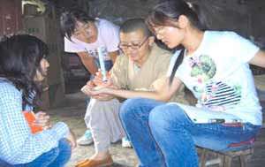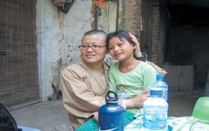 妙觉法师和患艾滋病人者子女在一起