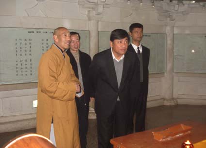 2007年11月11日上午十点,中国机械工业集团副总裁刘大山一行三人到法门寺参观,受到当家师智超法师热情接待。智超法师陪同刘大山一行参观了法门寺,瞻仰佛祖舍利并为他们讲解佛法。