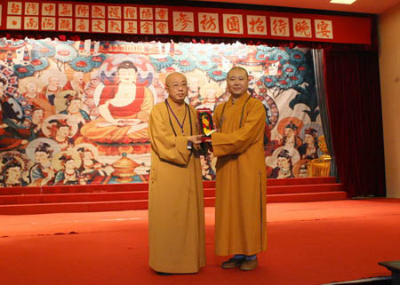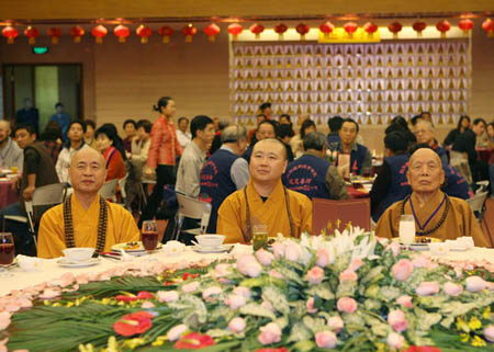 玉佛禅寺方丈觉醒法师热情接待了参观团一行,并在觉群楼多功能厅宴请代表团。宴会期间,玉佛寺梵乐团把即将到马来西亚、新加坡和印度尼西亚进行巡演的节目作了预演,预演获得参观团团员的高度赞扬.