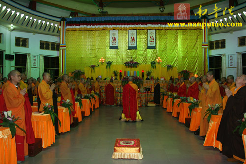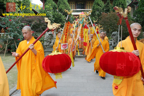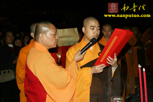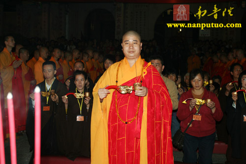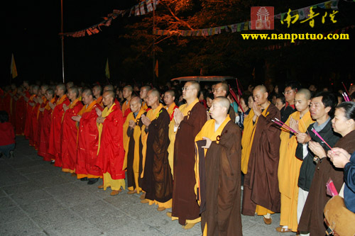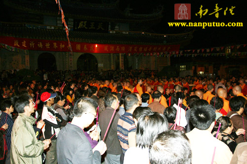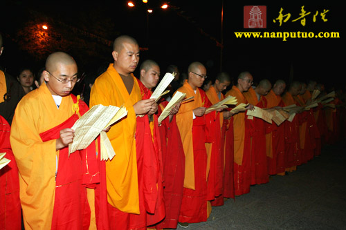 11月24日,南普陀冥阳普利大法会正式举行。凌晨4时30分,悠扬的晨钟声回荡在初冬的寒意里,僧众云集在大坛做早课,于绕佛期间,行至天王殿前请灵。召请四生六道一切孤魂等众,共赴法会,同蒙甘露法味,永脱轮回之苦;再请诸佛菩萨、诸上圣人等莅临坛场,愍念众生,慈悲垂护。