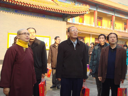 荐福观音寺住持妙贤法师在自在居热情接待视察团一行,并陪同参观了荐福观音寺。