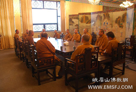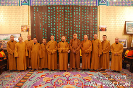 四川成都市新都区宝光寺方丈意寂法师带领寺院主要执事于2007年11月20日到四川峨眉山参学,受到峨眉山佛教协会会长、报国寺方丈永寿法师及其僧众的热情接待。