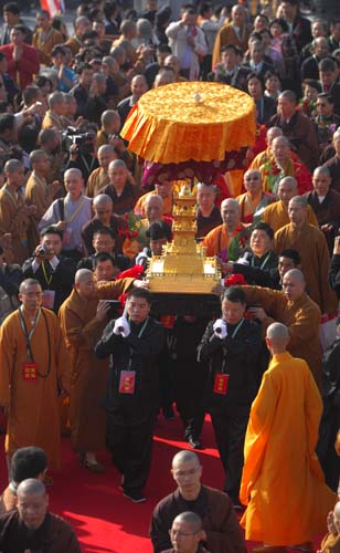 11月9日,佛教人士迎接释迦如来真身舍利。