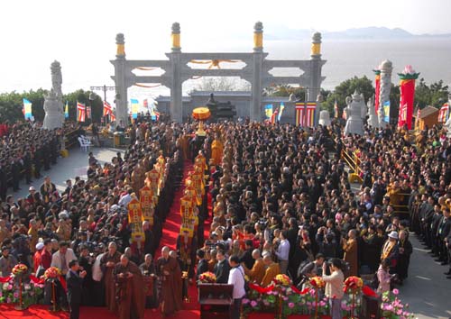 11月9日,素有“海天佛国”之称的浙江佛教名山普陀山举行了释迦如来真身舍利瞻礼以及纪念观音大佛像建成10周年活动。众多佛教人士及嘉宾参加了本次佛教盛会,朝拜瞻礼有2500多年历史的释迦如来佛真身舍利。