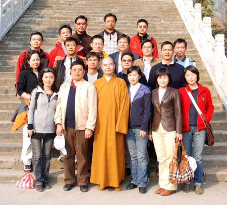 2007年11月4日,中欧国际工商学院EMBA商务考察团一行在共青团安庆市委书记王爱武陪同下参观位于安徽省安庆市的三祖寺,并请三祖寺住持宽容法师开讲一场禅学应用课程。宽容法师首先表示非常欢迎考察团一行参观三祖寺并简单介绍了三祖寺及禅宗的历史。