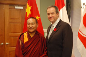 2007年11月7日,加拿大新兴石油城市卡尔加里市市长布隆康尼会见由中国藏学研究中心研究员安才旦率领的“中国藏学家、活佛代表团”一行。