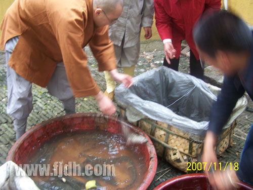 2007年11月18日 (农历十月初九)苏州报国寺四众弟子在东山灵源寺举行了大型放生法会,数百人参加了法会。