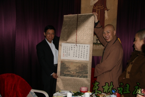 大安法师赠送纪念品给蒋局长。