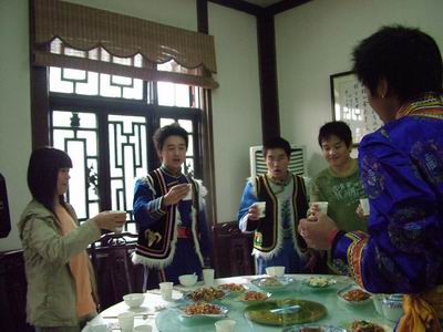 唱着“咂酒歌”,以茶代酒互祝新年快乐