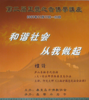 为引导正信,启迪正智,秦皇岛市佛教协会在2005年成功举办“首届正觉之音佛学讲座”的基础上,