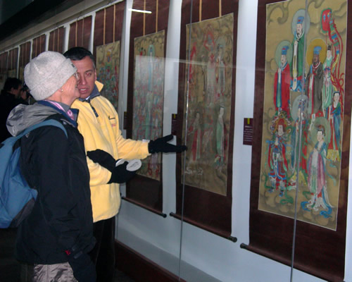 颜色鲜亮如故的水陆画吸引众多外国游客驻足