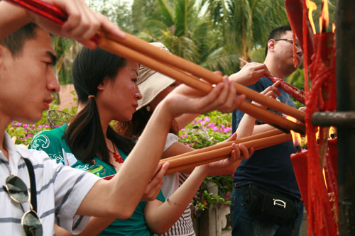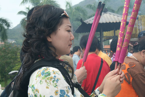今天一大早,到南山烧香祈福的信众和游客络绎不绝。在金玉观音、南山寺、南海观音等处,香火鼎盛,热闹非凡。还有不少游客专程赶往南山参加祈福放生活动。