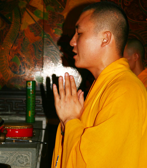 七天法会期间,在八相殿和金堂,南山寺当家法师智法将率僧众诵经念佛回响十方法界。