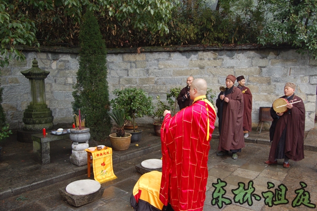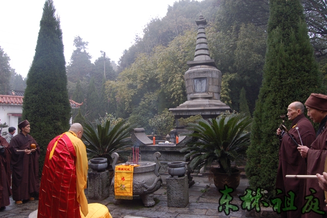 2007年12月22日,农历十一月二十二,冬至日。下午一点半,东林寺部分四众弟子在监院道元法师的带领下,举行了缅怀祖师大德祭祀远公祖师塔、佛陀跋陀罗尊者塔、果一上人塔和圆华法师塔的仪式,最后在往生堂前作了回向。