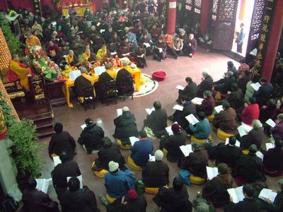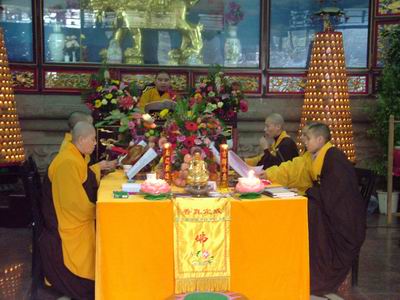 中国佛网讯 2007年12月24—26日,重庆华岩寺举行为期三天的“中峰三时系念”法会,超荐各姓门中历代宗亲,外拔十方法界一切无祀众生,并祈祷世界和平,现在眷属咸获诸益,共消无始业障。