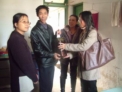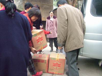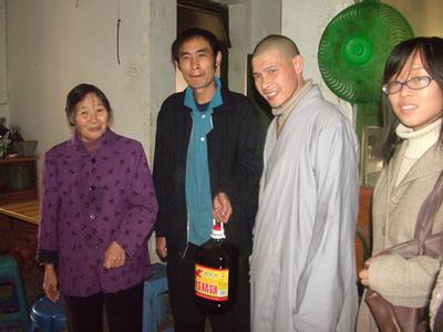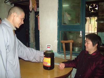 中国佛网讯 2007年12月2日上午,重庆华岩寺素食餐厅负责人仪悲法师,华岩文教基金会秘书长李辉居士,以及基金会的工作人员受理事长道坚法师的委托,前往九龙坡区中南村社区,为当地的50多户贫困居民送去爱心——每户1桶5升的食用油。
