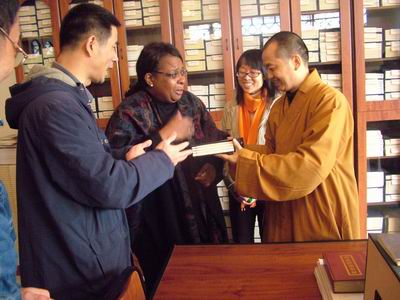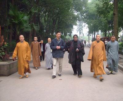 中国佛网讯 2007年12月10日,美国沃克国际文化交流中心中国部主任王忠欣博士一行来到重庆华岩寺参观,受到华岩寺方丈道坚法师的热情接待。