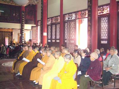中国佛网讯 2007年12月2日,重庆华岩寺般若讲堂内举行周日讲经活动,由重庆佛学院续明法师为大众讲授“三主要道”。