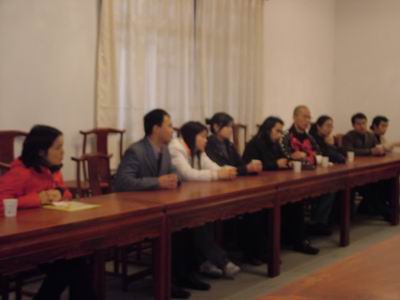 中国佛网讯 2007年12月22号,重庆华岩寺方丈道坚法师与来自于西南大学、西南政法大学等高校的二十余名老师在华岩寺会议室座谈。