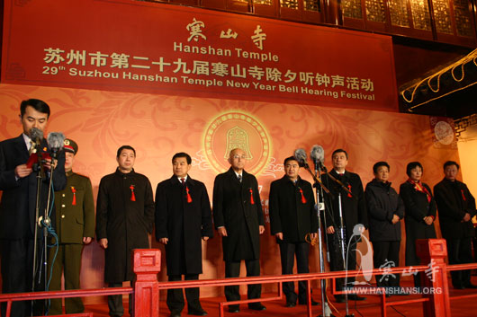 来自日本、美国、韩国、新加坡、马来西亚、菲律宾以及香港、台湾等地的代表和游客,以及世界各国在苏州投资的外商投资企业代表等近万人共同聆听了这次寒山寺钟声。