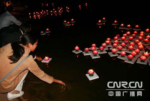 随后,来自海内外的1000多名信众和游客前往三谛桥放生池,参加祈福放生、放莲灯法会。在南山寺法师一番佛号长诵,洒净开示后,信众和游客们开始点燃莲花灯和提着鲤鱼和龟来到池边,在虔诚地祈福中放生,释放寓意朵朵心愿的莲花灯。