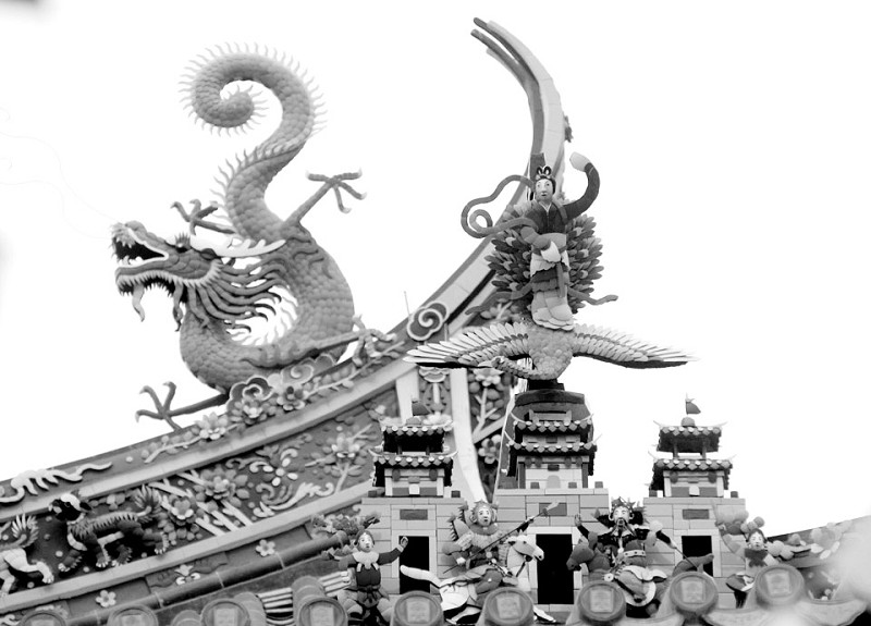 屋顶除了铺设光亮的琉璃瓦,还把大雄宝殿的堆塑、雕画等都恢复到了原样。南普陀还特地请来了泉州惠安的蔡姓堆塑世家。祖孙三代人利用祖传手艺,足足忙了半年多才把一片片各种颜色的瓷片贴成了屋顶上栩栩如生的人物、花草。尤其是屋顶的6条龙,大小不一、颜色鲜艳、活灵活现,令人叹绝。