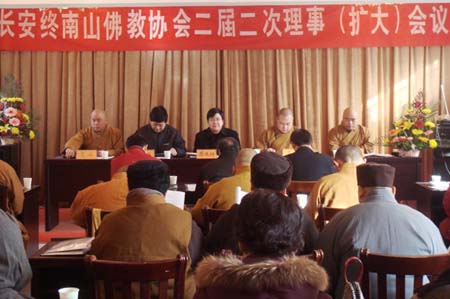 2007年12月28日,陕西省西安市长安区终南山佛教协会二届二次理事扩大会在兴教寺召开,长安区区委常委、统战部部长柴跟科出席会议,长安区民宗局魏伟局长、长安区统战部副部长阎麦焕在会上做重要讲话,长安区终南山佛教协会会长宽旭法师向大会作了2007年工作报告和2008年工作部署,终南山佛教协会副会长兼秘书长宽池法师主持会议,副会长演德法师致开幕词,副会长定慧法师向参会理事传达了陕西省佛教协会关于认真学习十七大报告的通知。来自全区60名理事和法师参加了会议。