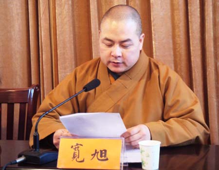 宽旭法师向大会作2007年工作报告和2008年工作部署