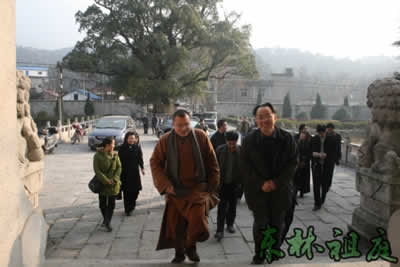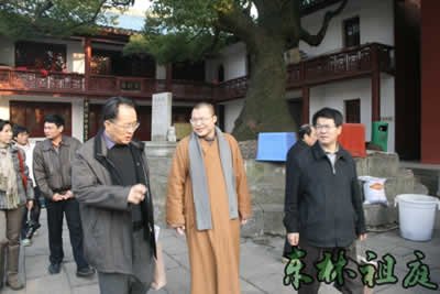 2007年1月5日下午,福建省文物局局长郑国珍在江西省文物局局长孙家骅陪同下,到九江市庐山东林寺调研文物情况,东林寺大知客道岸法师热情接待郑国珍局长一行。