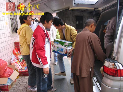 1月18日,受会长圣辉大和尚委托,本会的普陀法师、静仁法师以及厦门普光寺的道祥法师等一行驱车前往泉州肖厝清源庵,看望该庵收养的20名孤儿。普光寺的法师为孩子们带去了大米、面粉、牛奶、食用油、方便面、米粉等春节慰问品。我会为他们送去了3000元的慰问金,祝愿孩子们能够过上一个快乐,开心的春节。
